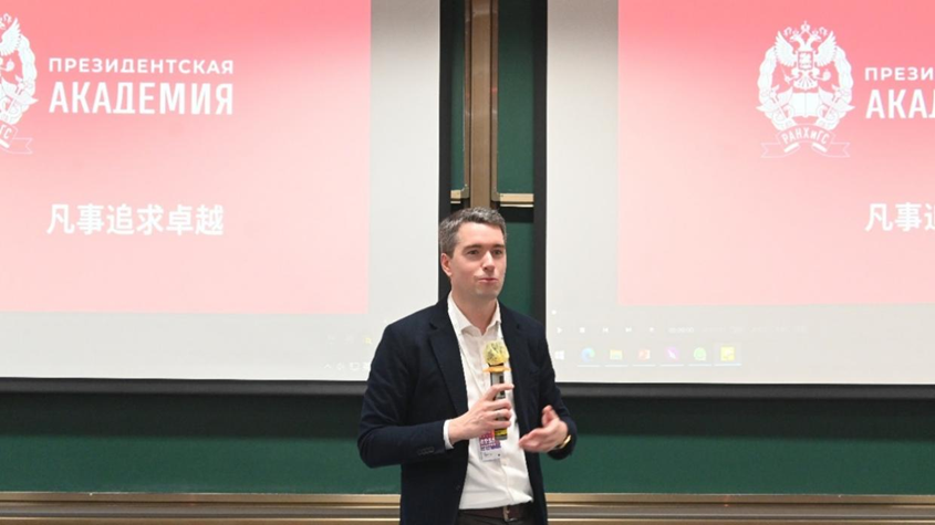 俄罗斯总统国民经济与公共管理学院副院长Evgeniy Itsakov在发言中通过宣传片展示了该校的校园风貌与发展成果,并对BIBS的热情接待表示感谢。他诚挚邀请湾区国际商学院师生未来访问莫斯科,进一步拓展双方合作空间。