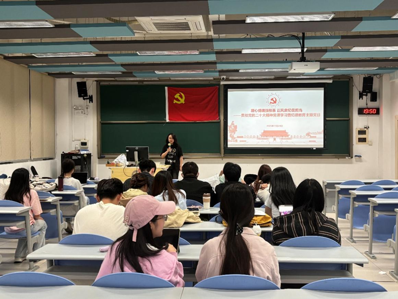 为深入学习贯彻党的二十大及二十届四中全会精神,加强学生党员纪律意识与党性修养,2025年11月24日,北京师范大学湾区国际商学院2025级会计硕士党支部在励耘楼A105组织开展“凝心铸魂强根基 正风肃纪促担当”主题党日活动。本次活动由党支部全体党员共17人参与。
