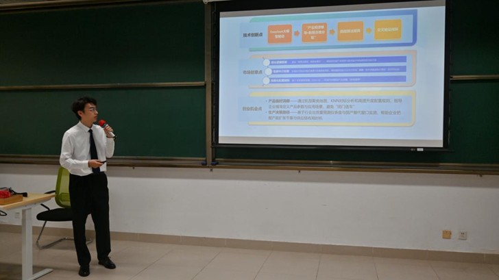 下午4时30分,三创赛终极赛拉开帷幕,成功晋级的两支队伍率先展开巅峰对决。两支队伍同台比拼,以完备的项目规划、鲜明的创新亮点与出色的现场表达,充分展现了参赛团队扎实的专业素养与卓越的创新实践能力。