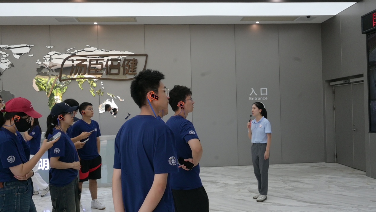 随后,师生们参观了企业的党建基地。基地以“党建+产业+文旅”为设计理念,分为序厅、高举旗帜、党建引领、驱动发展、智慧党建五大篇章。通过解说员的生动讲述,师生们深入了解了汤臣倍健党组织的发展历程与组织架构,深刻感受到企业将红色血脉融入健康事业的独特文化。