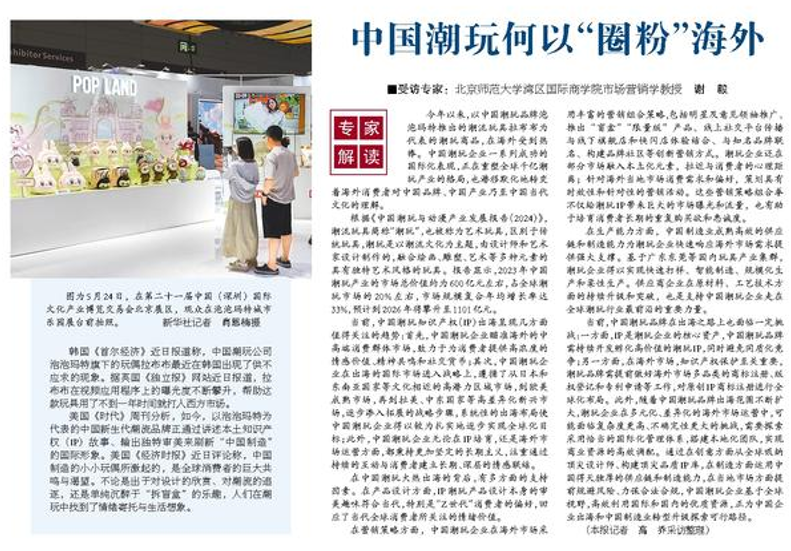 谢毅教授在接受《人民日报海外版》采访时指出,中国潮玩出海并非偶然现象,其本质是“情感价值的全球化”。她分析称,潮玩不同于传统玩具,它融合了艺术、设计与潮流文化,满足的是当代消费者对情绪价值、身份认同及社交货币的深层需求。中国潮玩之所以能在海外成功“圈粉”,主要得益于产品设计、营销策略与制造能力三大核心支撑。尤其值得关注的是,中国成熟高效的供应链已不再是短板,反而成为潮玩企业快速响应全球市场的关键竞争优势。